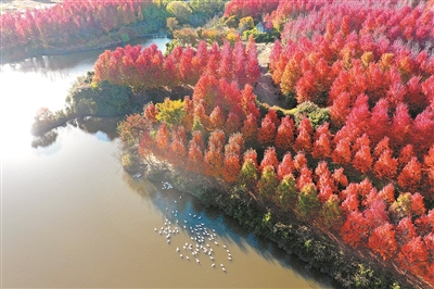 ■眼下,正是赏枫好时节。位于即墨区金口镇青山前村的枫树林一片火红,迎来一年当中最美的季节。从高空俯瞰,枫林宛如一块块色彩斑斓的拼图;置身林中,枫叶由绿转红、绚丽多彩。这般别样的秋日浪漫,吸引不少游客前来观光。