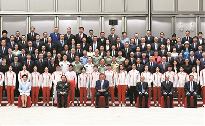 新华社广州11月9日电 在第十五届全国运动会即将开幕之际,中共中央总书记、国家主席、中央军委主席习近平9日下午在广州亲切接见全国群众体育先进单位、先进个人代表和全国体育系统先进集体、先进个人代表,向他们表示热烈祝贺,勉励他们奋力拼搏、再创佳绩,为建设体育强国作出新贡献。
