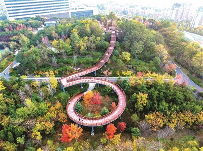在现下的赏叶季中,银杏堪称占据了斑斓地图的“半壁江山”。其实除了银杏,还有很多区域纷纷“拉满饱和度”,在初冬时节展现出独特的视觉魅力。市南的百花苑宛如人文与自然的交响诗,“一像一树一故事”的精心设计让这里成为一座露天城市文明档案馆;市北的齐鲁康体公园展现出自然与运动的和谐画卷,放眼望去犹如铺展开来的彩色绒毯,成为市民休闲运动的诗意背景;李沧的世博园正值水杉的“色彩巅峰期”,季节限定的焦糖色形成绚丽穹顶,网红小火车穿梭其间,宛如驶入童话世界;崂山风景区则彰显着青岛标志性景点的壮丽景象,登高望远,层林尽染的山色与辽阔海景相映,尽收浓郁韵味。