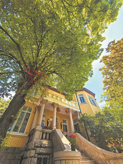 第一种味道,来自于历史的故事。拾花楼原为民族资本家、青岛面粉大王高实甫故居。1931年,由中国设计师乐子瑜精心设计。拾花楼欧式镂空大门依山势而建,山墙化作天然照壁与引梯,幽然间,为这座小楼添了几分神秘色彩。屋顶别具一格,采用红色牛舌瓦,在繁茂绿树环抱中,熠熠生辉。西南角,那座意大利风格的观景角楼,宛如城市之眼,青岛前海风光尽收眼底。