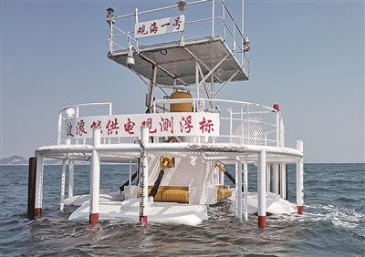 波浪能供电观测浮标“观海一号”是只能抵御超强台风的“千里眼”,不仅具备空中、水面、水下立体观测海洋的能力,还可以利用无穷无尽的海水波浪自动发电,从而保持长期不间断地向大陆传输深海数据。