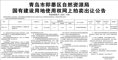 青岛市即墨区自然资源局国有建设用地使用权网上拍卖出让公告