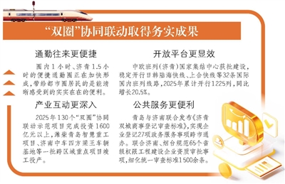 2025年130个“双圈”协同联动示范项目完成投资1600亿元以上,潍柴青岛智慧重工项目、济南中车四方梁王车辆基地等一批跨区域重点项目竣工投产,都市圈在产业系统中现代产业分工协作逐步深化。