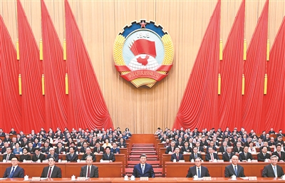 三月的北京,春启华章。人民大会堂大礼堂灯光璀璨,气氛隆重热烈。中国人民政治协商会议会徽悬挂在主席台正中,十面鲜艳的红旗分列两侧。