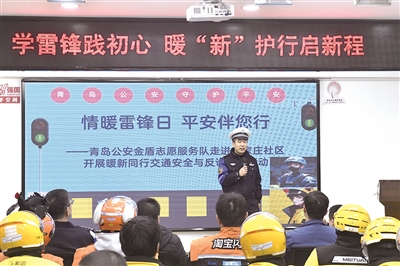 青岛公安金盾志愿服务队走进市南区珠海路街道辛家庄社区,以“情暖雷锋日 平安伴您行”为主题,面向新就业群体开展交通安全和反电信诈骗宣传活动。市南公安交管大队民警、市南公安刑侦大队反诈中心民警结合外卖员、快递员的职业特点,深入剖析交通安全知识和常见诈骗手段,引导大家把安全准则融入日常工作生活。