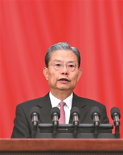 在报告中,赵乐际指出,2026年是“十五五”开局之年。全国人大常委会要在以习近平同志为核心的党中央坚强领导下,深刻领悟“两个确立”的决定性意义,增强“四个意识”、坚定“四个自信”、做到“两个维护”,坚持党的领导、人民当家作主、依法治国有机统一,发展全过程人民民主,坚持好、完善好、运行好人民代表大会制度,稳中求进推动人大工作高质量发展,为实现“十五五”良好开局作出应有贡献。