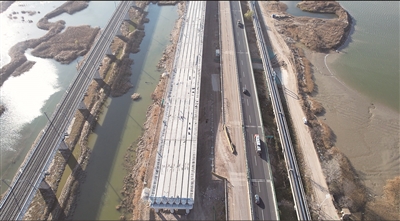 约7米高的白色桥墩高耸挺立,挖掘机、举臂车、吊车等机械设备有序作业,50余名施工人员坚守在各自岗位上,开展盖梁施工作业……走进青兰高速河套至黄岛段改扩建工程ZT1标段,一派繁忙的施工建设场景映入眼帘。ZT1标段起自青兰高速与新机场高速交会处的河套枢纽互通,止于胶州市九龙街道,全长6.168公里。主要建设内容包括桥梁、路基和路面工程。其中,大沽河特大桥新建工程尤为关键,由拆除新建段、路基改桥段及旧桥顶升拼宽利用段三部分组成。去年10月,路基改桥段施工启动,目前已完成总体进度的70%,当前正在加紧推进盖梁施工。
