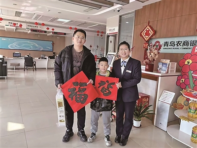 走进青岛农商银行总行营业部,大厅里装饰着喜庆的“马上有福”主题元素,几位家长正带着孩子在柜台前办理业务,孩子们踮起脚尖,看着存单上自己的名字,笑意在脸上绽开。