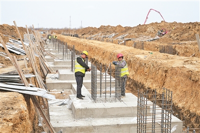在平度市白沙河街道崔冷路,走进占地近60亩的德盛恒信速冻蔬菜加工项目现场,机器轰鸣、焊花飞溅,工人们穿梭在钢筋水泥之间,一派热火朝天的繁忙景象。“项目已进入主体施工阶段,预计今年5月完成主体框架,6月完成内外装修,9月完成设备安装。”项目负责人郑全斌介绍。