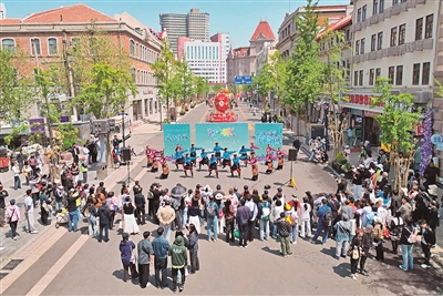 ■4月25日,“山海同歌”桑珠孜区艺术团“文化快闪”进景区活动在中山路亮相。来自西藏日喀则市桑珠孜区的艺术团与青岛本土文化志愿者携手,为市民游客奉上一场高原艺术与山海风情交织的视听盛宴。本次活动由青岛市文化和旅游局、青岛市第十一批援藏干部人才组主办,青岛市文化馆、市南区文化和旅游局、日喀则市桑珠孜区文化和旅游局承办。 王 雷 摄影报道
