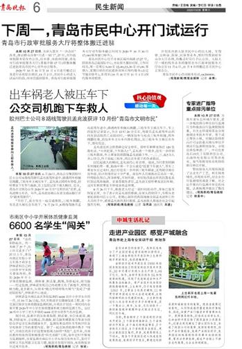 本报10月27日讯 “这次仰卧起坐,我一共做了27个,比上次又进步了!”27日上午,青岛市南区实验小学五年级7班学生伊姝诺和自己的小伙伴早早来到天泰体育场,参加 2020年中小学体质健康监测。测体重、肺活量,跳绳,仰卧起坐,耐力跑……经过监测,伊姝诺发现自己的成绩又有了新提升,特别是耐力跑,进步最大,从原来“跑完呼哧呼哧大喘气”变成了“感觉较轻松”,伊姝诺开心地说。
