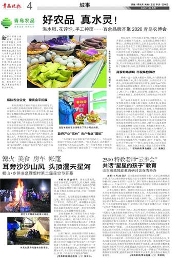 欲滴,刚拔的萝卜清甜脆生,从带着泥的地头货,到包装精致的高档礼盒琳琅满目,展厅各处人头攒动,在青岛国际会展中心 1号馆, “2020第三届中国(青岛)国际品牌农产品博览会暨农业 ‘国际客厅’农产品展销活动”正热火朝天举行,虽然今年规模减小,但参展商和观众的热情不减,商家推广了品牌,消费者也得到了真正的实惠。