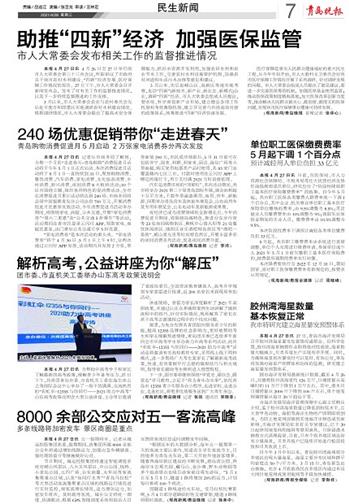 本报4月27日讯 记者从市商务局了解到,为期一个月的“走进春天·青岛购物”消费促进月活动将于今年5月1日正式启动。本次消费促进月活动将于5月1日一直持续到31日,聚焦购物消费、餐饮消费、汽车消费、家电消费、文化旅游消费、乡村消费、新兴消费、夜间消费8大板块活动;10个区市围绕主题,组织各具特色的促消费活动,全市在消费促进月累计活动将达到240场。市商务局将会同中国银联青岛分公司出资700万元,开展消费促进月优惠券发放活动。今年消费促进月活动举办期间,将围绕家电、商超、公共交通,开展“家电消费券”“周六二重惠”及“公共交通5折乘车”等活动,活动期间在青市民登录云闪付APP,领取家电、商超优惠券,出门乘坐公共交通可享5折优惠。