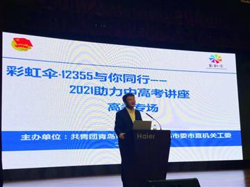 本报4月27日讯 为帮助中高考学子和家长了解最新的高考政策,缓解青少年备考压力,27日下午,共青团青岛市委、市直机关工委在海尔冰山之角国际会议中心举办了一场干货满满、交流热烈的“彩虹伞·12355与你同行——2021助力中高考”山东高考政策说明会大型公益讲座。主办单位邀请了省政协委员,全国资深教育媒体人、高考升学规划专家娄雷进行授课,近200名家长来到现场参加活动。