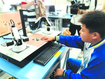时代的风驰电掣;智能家居实训室里,借助手机端的APP,就能轻松遥控家里的所有设备;人工智能实验室,只需要一个程序就能实现与机器人对弈、垃圾分类、寻迹移动等功能……26日上午,作为今年青岛市职业教育活动周首站,记者走进青岛电子学校多个“硬核实验室”,零距离感受岛城中职教育第一校的“黑科技”实力,揭秘逐年攀升的升学率和100%就业率背后的“科技担当”。