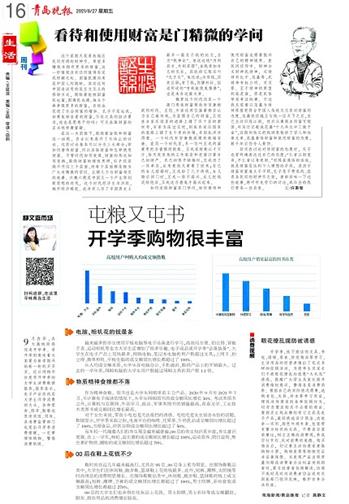 越来越多的学生使用平板电脑等电子设备进行学习,高效而方便。拍立得、智能手表、运动相机等也为大学生活增加了很多乐趣。电子商品成开学季“必备装备”。大学生在电子产品上花钱最多,网购电脑、笔记本电脑的用户数超过文具;上网卡、拍立得、微单相机、平板电脑的成交额同比增长都超过了100%。
