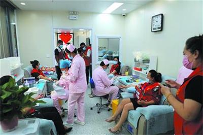 爱心市民撸袖献血。中建幸孚MALL爱心献血屋。