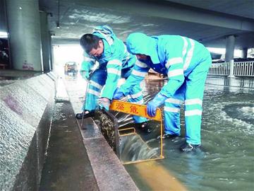 上午9时,市区开始降雨,排水公司立即按照预案要求对辖区降雨情况快速响应,对宁夏路、香港路、东海路、山东路、黑龙江路等重点道路进行不间断巡视,对山西路济南路口、孟庄路铁路桥下等重点积水部位安排专人盯守,及时处置各类突发事件。对易冒溢跑盖的检查井进行应急处置,对道路上被树枝、树叶堵塞的雨水箅子进行清理,保障排水畅通。结合降雨过程中的大风天气,防汛人员加强了安全防护,佩戴安全帽并预防高空坠物等安全隐患。