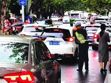 市南交警中山路中队民警在青岛市实验小学门口疏导交通。 刘卓毅 摄