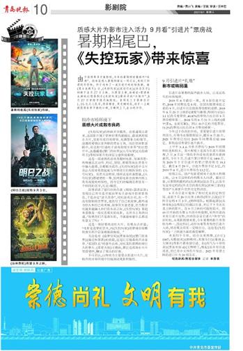 暑期档收尾《失控玩家》热映。《明日之战》定档9月3日。《丛林奇航》有望9月上映。