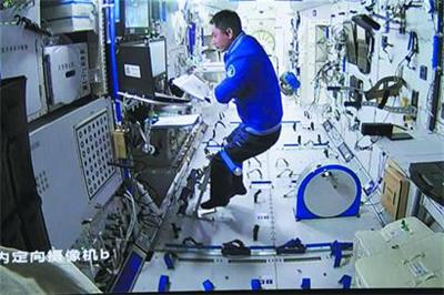 11月7日在北京航天飞行控制中心拍摄的神舟十三号航天员叶光富在核心舱内工作场景。