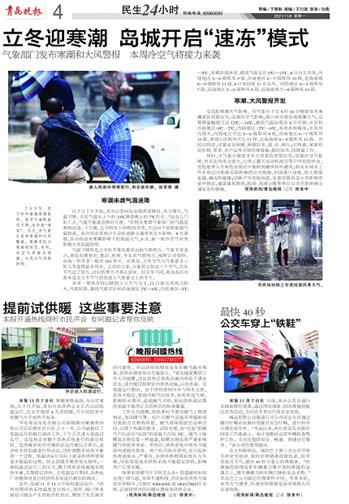 7日立冬。受下半年最强寒潮影响,我市气温断崖式下降,全市被“速冻”。当天,市气象台发布寒潮和大风警报,提醒市民注意做好防范。本周,冷空气将接力来袭,大风天气仍将持续。