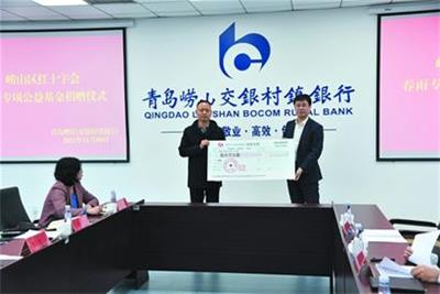 本报11月8日讯 8日,青岛崂山交银村镇银行举行“崂山区红十字会春雨专项基金捐赠仪式”,青岛崂山交银村镇银行捐款10万元,用于救助崂山区患大病困难群众及帮扶地区学生助学,爱心捐款将连续三年捐赠,累计30万元。这也是青岛崂山交银村镇银行春雨基金第二个三年的公益之路。