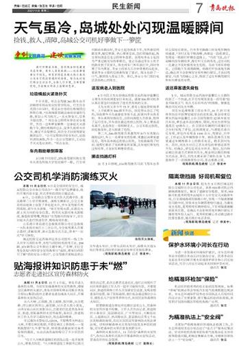 路灯杆横在马路、装有现金的包裹遗失在车厢、乘车人突发疾病……这些事情看似不相及,却是穿梭在岛城大街小巷的公交车司机经常遇到的场景,每当此时他们都会主动出手,与路人行方便,为乘客解忧愁,为岛城文明添上温暖的色彩。