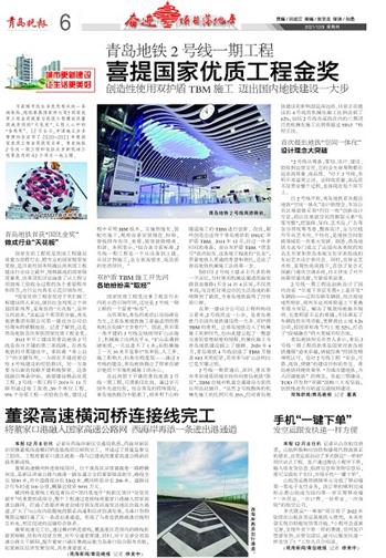 “国家优质工程金奖对于我们做工程建设的人来说,就好比金鸡奖之于我国的影视界,是荣誉的‘天花板’,是毕生的追求。”说起这个奖项的分量,青岛地铁集团有限公司第一建设分公司总经理朱明感慨地说。记者了解到,这是青岛地铁首次荣获国家优质工程金奖。