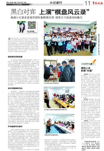 “通过比赛晋级,获得证书、奖状、奖牌、奖杯等多项荣誉,可以作为国际象棋特长生升入青岛一流的中学。在青岛学习国际象棋,从业余11级一直到国家运动员三级都无需出本市考级,一年比赛100多场,这是青岛其它特长学习考级方面所无法比拟的。青岛有全国唯一的国际象棋甲级联赛业余队,青伟国际象棋俱乐部被授予全国后备人才基地,已为国家二队输送了多名棋手。 ”金静为小记者们讲述了国际象棋的发展与现状,在青岛学习国际象棋的平台和机遇,以及学习国际象棋的实际应用和优势。大家听得津津有味,以小记者的视角抓住新闻点认真记录。在随后的采访环节,小记者们积极开动脑筋提问。