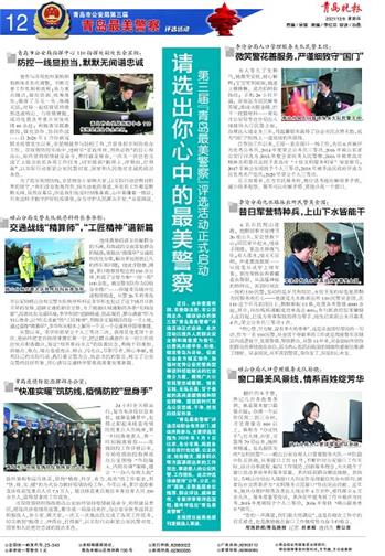 近日,由市委宣传部、市委政法委、市公安局主办,媒体协办的第三届“青岛最美警察”评选活动正式启动。此次活动以提升人民群众安全感和满意度为指引,以警民共建平安、和谐、稳定青岛为目标,促进社会各方相互协作,加强对优秀公安民警典型事迹和经验做法的社会推介力度,展现广大公安民警忠诚履职、情系百姓、无私无畏、甘于奉献的高尚道德情操和职业精神,塑造新时代青岛公安忠诚、干净、担当的铁军形象。“青岛最美警察”评选活动联合有关部门、媒体共同参与,主要评选范围为2020年1月1日以来,各分市局、局直各单位在打击犯罪、公正执法、抢险救灾、服务群众等方面涌现出来的工作突出、事迹感人的公安民警、工作团队。此次评选活动坚持“公平、公正、公开”原则,采取基层单位推荐、群众评议、媒体宣传、专家评审等评选流程,最终评选出“青岛最美警察”。