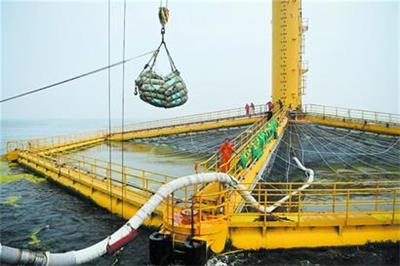 国家深远海绿色养殖试验区首次成功规模化收鱼。 李亮 摄