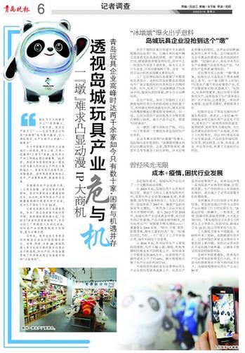 作为中国最早的纺织工业基地之一的青岛,曾与上海、天津一起赢得“上青天”美誉,在玩具生产加工领域也曾长袖善舞。 15年前,历经多年发展的青岛一度成为国内最大的玩具生产和出口集散地之一。青岛玩具从家庭作坊,承接港澳、国外等客商来料加工起步,产业集聚成群,配套体系完善。