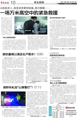本报2月15日讯 今年40岁的市民王先生14日拨打城运控股公交隧道五分公司电话,感谢304路驾乘人员。原来,王先生11日乘车上班,行驶至海安路站时突发癫痫,身子直挺着倒在地板上,牙关紧咬,口吐白沫,四肢不停地抽搐。 304路乘务员刘春萍发现情况后立即上前询问,驾驶员王伦辉也赶紧停车。两人上前帮掐人中,车上的热心乘客伸出援手,帮忙掰开嘴避免咬伤舌头。另一边,有热心乘客帮忙拨打了急救电话。