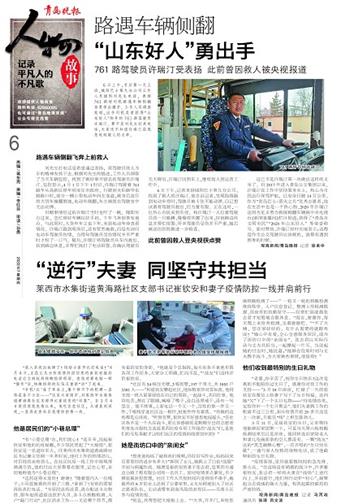 6日上午,节后第一天上班,城阳巴士第九分公司工作人员接到刘先生电话,表扬761路好司机路遇车辆侧翻奋勇伸出援手。工作人员调查发现,出手司机是曾获得“山东好人”称号的761路驾驶员许瑞汀。要不是刘先生打来电话,大家还不知道许瑞汀在危急时刻救人的义举。