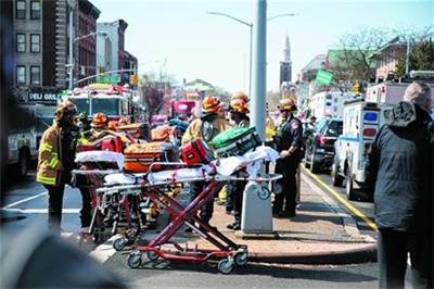 事发时恰逢早高峰,凶手头戴防毒面罩。纽约警方12日晚公布嫌疑人姓名,怀疑62岁的男子弗兰克·詹姆斯使用信用卡在费城租下厢式货车到纽约作案。 据新华社12日,救护人员在纽约发生枪击的地铁站附近工作。