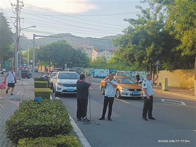 本报8月18日讯 17日下午5时许,公交崂山二分公司工作人员在日常路线安全巡查中发现,青大一路与青大三路路口处,一条电缆因钢索断裂而垂落,影响了车辆正常通行。此时临近晚车流高峰,往来车辆增多,渐渐形成拥堵,在与相关部门取得联系后,工作人员迅速找来工具,赶往现场帮助临时托起线缆,另外几名工作人员则帮助疏导交通,近二十分钟后,该路段拥堵现象得到缓解,工作人员又用钢丝重新固定电缆。因需将线缆架设到很高位置,地面人员够不着。