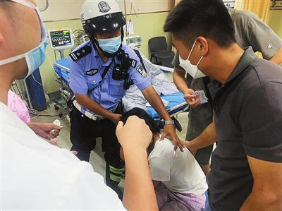 当天下午4时30分许,一辆黑色轿车行驶至重庆中路金水路路口时,司机向路口执勤交警求助,称车上有一名10岁女孩被三轮车撞伤头部,需要赶去青大附院东院就医。民警李国发立即联系中队铁骑辅警杨阳到场。杨阳在重庆中路振华路路口与求助车辆会合,立即骑摩托车开启警笛、警灯,仅用10分钟便到达医院。
