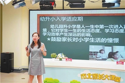 再过一周,岛城中小学将迎来新学期,一批新生将开启全新的学段生活。为了帮助家长更好了解新学段教育教学规律,助力新生顺利完成学段适应,近日,青岛市北区教育和体育局主办的“市北家长大课堂”开课,围绕入园适应、幼小衔接、小初衔接三个关键期,邀请家庭教育名师为家长“补课”。其中,青岛平安路第二小学素养发展中心副主任袁凤为家长们带来了“调整焦点 助力成长”一年级家长入学必修课,帮助家长和孩子共同完成成长过程中第一次重要衔接。