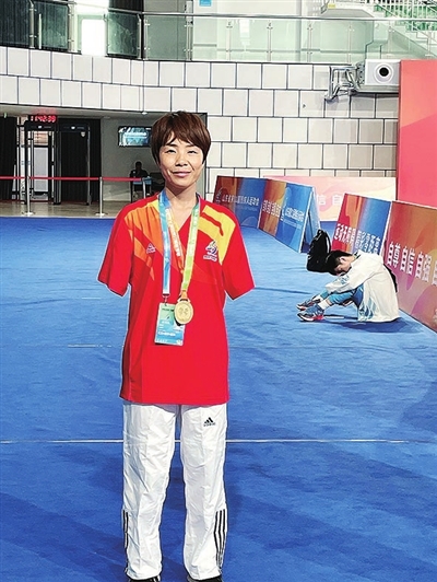 去年10月,本报以《她有一双隐形翅膀》为题,独家报道了失去双臂的青岛黄海学院女教师刘仕春,人生经历曲折但最终成就梦想,凭借自身努力获得了富有力量的“隐形翅膀”。从全国唯一的女口书画家,到两次获得全国残运会跆拳道女子铜牌,刘仕春用永不停歇的拼搏和进取,演绎出生命的更多可能。近日,山东省第十一届残疾人运动会跆拳道比赛在日照市岚山区体育中心举行,来自全省11支代表队的92名运动员参加比赛,刘仕春荣获女子跆拳道比赛竞技组K41-49公斤级冠军。