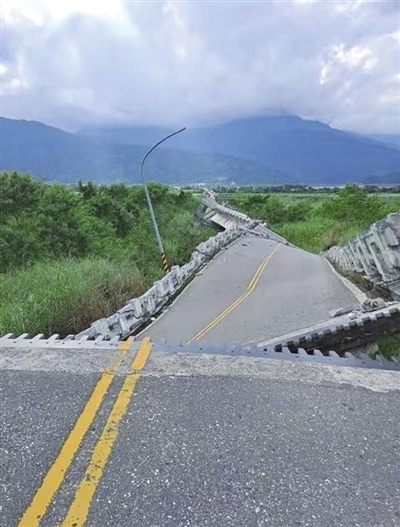 ▶花莲玉里高寮大桥受地震影响,断成好几截。