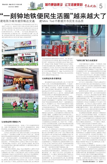 去年底,商务部等11部门联合发布通知,公布全国首批30个城市“一刻钟便民生活圈”试点名单,青岛入选。青岛地铁依托快速铺展的地铁线网,以沿线上盖商业载体建设助力打造“一刻钟便民生活圈”。青岛地铁集团全资子公司青岛青铁商业发展有限公司创新了Mini Tod这种小体量、个性化的商业形式。2号线海信桥站上盖商业“青铁·时光里”就是一个典型的Mini Tod项目,未来,这里将引进餐饮、集市等业态,打造服务周边人群的餐饮消费场所、打通周围社区群众日常采购的“最后一站”。