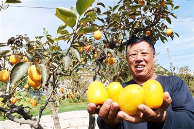 柿子熟了,村民梁玉群乐得合不拢嘴。