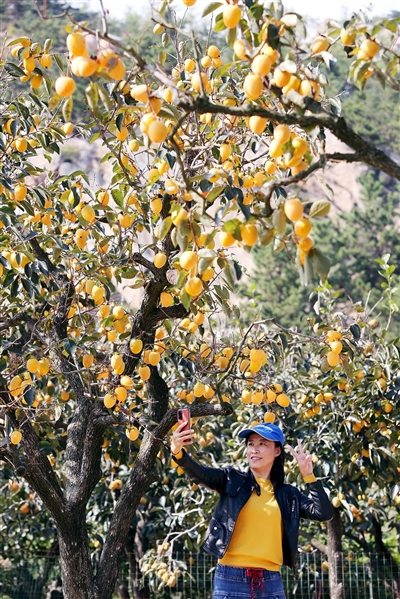 正在摘柿子的村民梁玉群介绍说,鹤山柿子有着上百年的历史,目前柿子园的面积已经达到1000多亩。温润的海洋气候,酸碱适宜的土壤,山谷间溪流的滋养,让鹤山成为著名的胶东柿子之乡。每年秋季,到了当地特产金瓶柿收获的季节,都会吸引众多市民和游客前来采摘、赏景,与果农一起感受丰收的喜悦。
