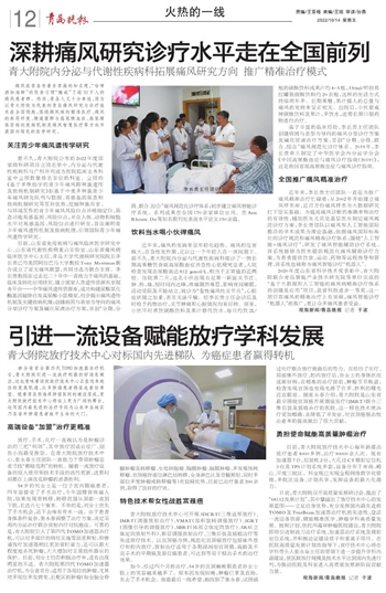 2020年度山东省科学技术奖表彰中,青大附院联合青岛智能产业技术研究院等单位完成的“基于大数据和人工智能的痛风病精准诊疗体系的创建及应用”项目,获省科技进步一等奖,这一项目在痛风的精准治疗上有突破,痛风智能诊疗“机器人”的推广,更让众多痛风患者受益。