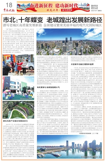 “港”更强了、“产”更新了、“城”更美了,这是对市北区十年发展成就最凝练的表述。这十年,市北区实现了综合实力的新跨越,2021年,生产总值首次过千亿元;一般公共预算收入实现104.1亿元,是十年前的1.6倍;十年,实现新旧动能转换的新突破,高新技术企业数量十年增加15倍,达375家;十年,实现城区面貌华丽蜕变,推进占主城区70%的4.9万户棚户区改造;十年,实现民生福祉的持续增进,高质量完成就业、教育、医疗、养老、住房、社保等92项区办实事……如今,市北区着力推动产业转型、城市更新、开放引领、城区管理、文化传承、民生保障、社会治理“七个创新突破”,全面建设繁荣美丽幸福的现代化国际城区。市北,一座转型中的现代化国际城区,让人充满期待。