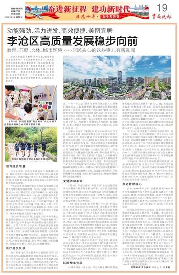 记者从李沧区了解到,今年以来,经过李沧区全体居民和广大志愿者的努力奋斗,李沧区经济社会发展、民生事业取得了较大的成果,疫情防控形势总体平稳。教育提质增量、丰富多彩的文体活动、医疗健康事业稳步发展、优美宜居的环境……李沧区全体居民的获得感、幸福感、安全感不断提升。一个动能强劲、活力迸发、高效便捷、美丽宜居的新李沧,正展现在大家面前。