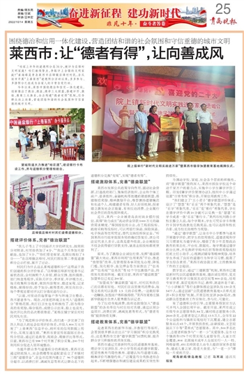 今年以来,莱西市围绕德治和信用一体化建设,创新推出了德治、德益、德学三大联盟,搭建评价、激励、教育三大体系,全力构建“德者有得”机制,引导群众向上向善,营造团结和谐的社会氛围和守信重德的城市文明。