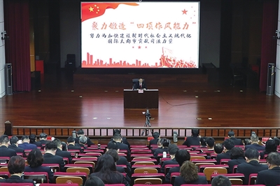 青岛市中级人民法院党组书记、院长张正智为全院干警讲授专题党课。