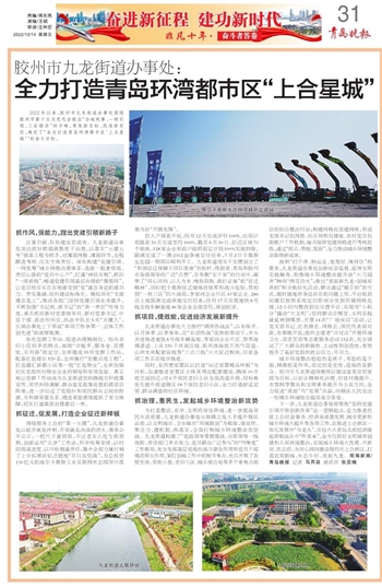 2022年以来,胶州市九龙街道办事处围绕胶州市第十五次党代会提出“全域统筹、一核引领、三区联动”的方略,聚焦新目标、找准新定位,确定了“全力打造青岛环湾都市区‘上合星城’”的奋斗目标。